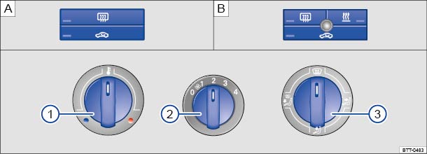 | Taste, Regler | Ergänzende Informationen. Heiz- und Frischluftsystem ⇒ Abb. 163 . |
