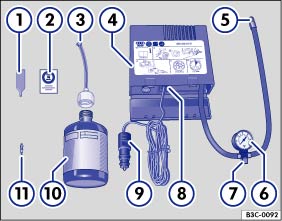 Das Pannenset besteht aus folgenden Bestandteilen ⇒ Abb. 212 :