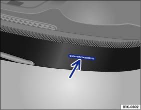 Das Typschild ⇒ Abb. 16 B ist nach Öffnen der Fahrertür am Türholm unten zu sehen. Fahrzeuge für bestimmte Export-Länder haben kein Typschild.