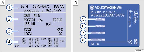 Beispielbild mit Motorkennbuchstabe CCZB â‘¢. B: Typschild.