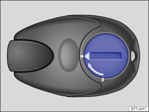 Wenn die Kontrollleuchte in der Funk-Fernbedienung ⇒ Abb. 165②  bei Tastendruck etwa 5 Sekunden lang orange blinkt oder nicht aufleuchtet, muss die Batterie in der Funk-Fernbedienung ersetzt werden.