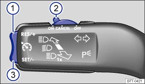| GRA-Regelung vorübergehend abschalten. | Schalter ② in Stellung