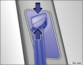 Mithilfe der Gurthöheneinstellung für die Vordersitze und ggf. für die äußeren Rücksitze der zweiten Sitzreihe kann der Verlauf der Sicherheitsgurte im Bereich der Schulter körpergerecht angepasst werden, damit er richtig angelegt werden kann: