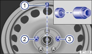 und Einbauorte der Anti-Diebstahl-Radschraube â‘¡ oder â‘¢.